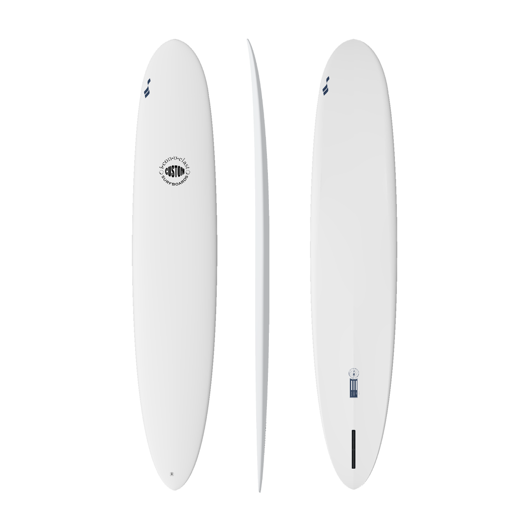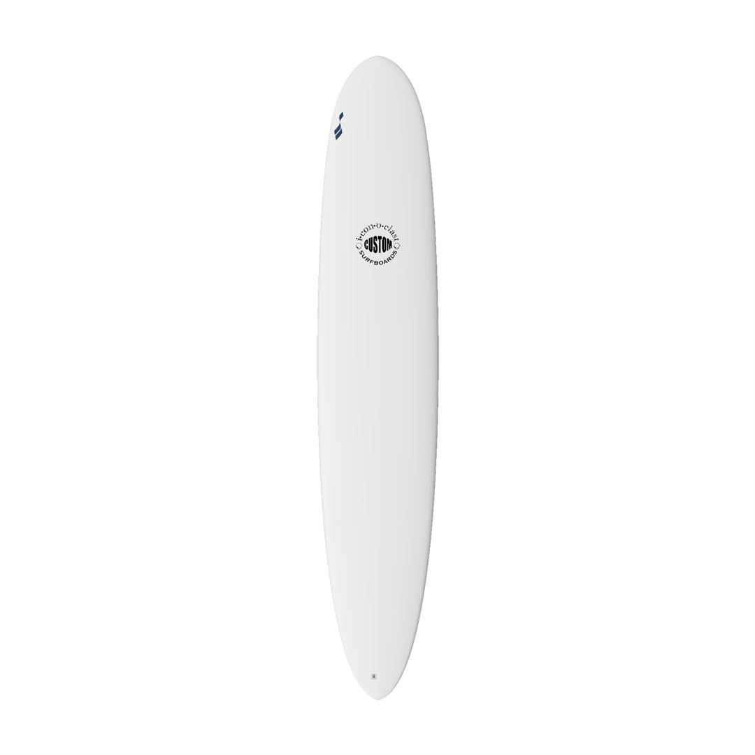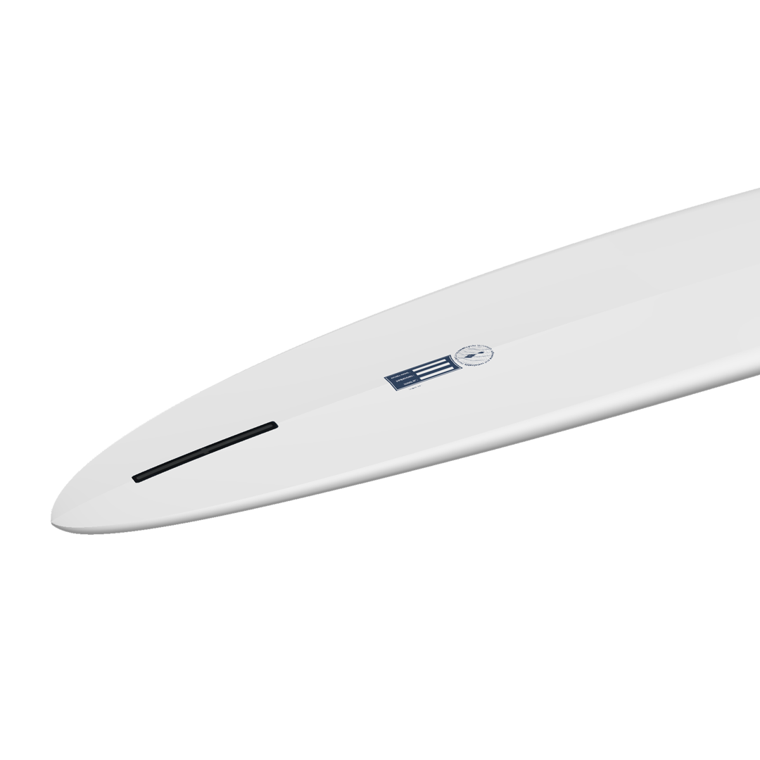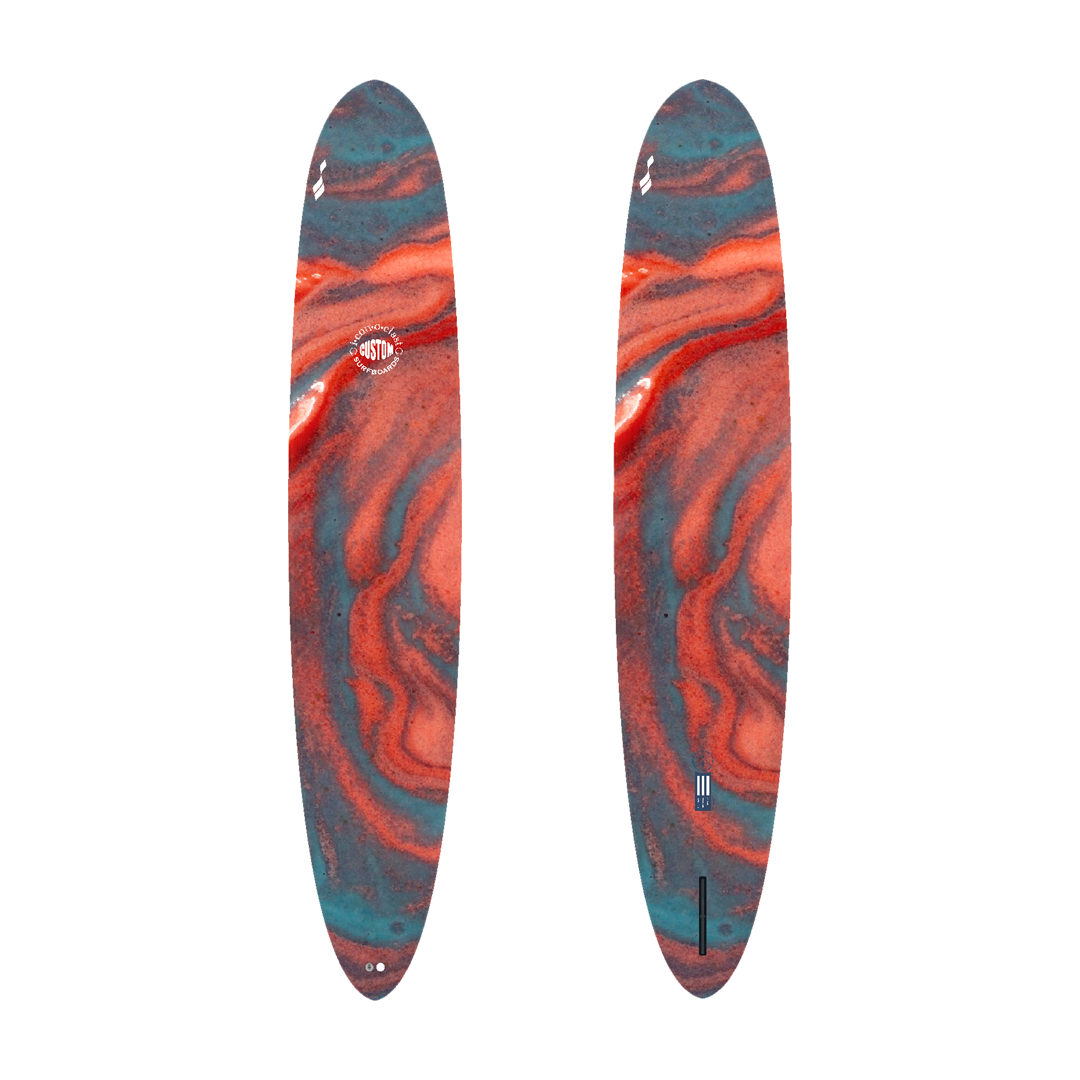Cruising down the line then, hotdamn, throwing a hard cutback that shocks those who are assuming you are on a normal longboard. The "Nose-glider" model was a custom for a large team rider in the Santa Barbara area, who wanted to surf a wide range of conditions. The bottom has a blended concave under a narrower nose, some classic belly in the midsection, with fairly pronounced double concaves in the rear and a fair bit of tail rocker.