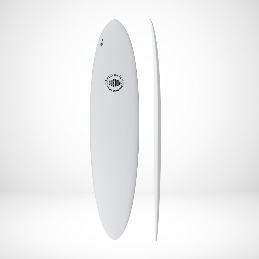 The “Venturi Hull Duo” is designed to fly from section to section with porpoise, its convex bottom conforming with the wave, rather than fighting against it. Like the much smaller “Slip Disc,” this stretched out model technically fits in the mid-length realm, but only due to its absolute length.