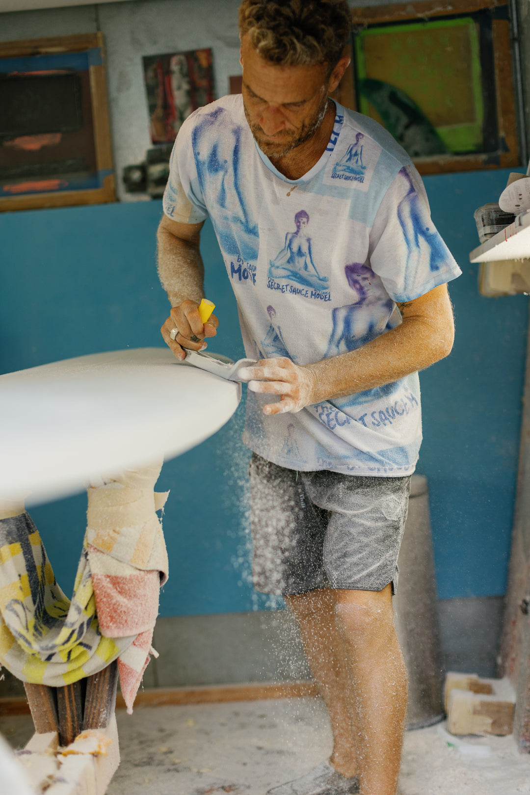 "The fact that intentionally shaping and changing contours and anticipating the reaction of the hydrodynamic features of a surfboard and water flow along with wave shape is just so crazy. You could do it in your backyard. I made a shaping room out of a walk in freezer. I’ve been doing start to finish builds on boards and it is full of blood, sweat and tears (actually)."